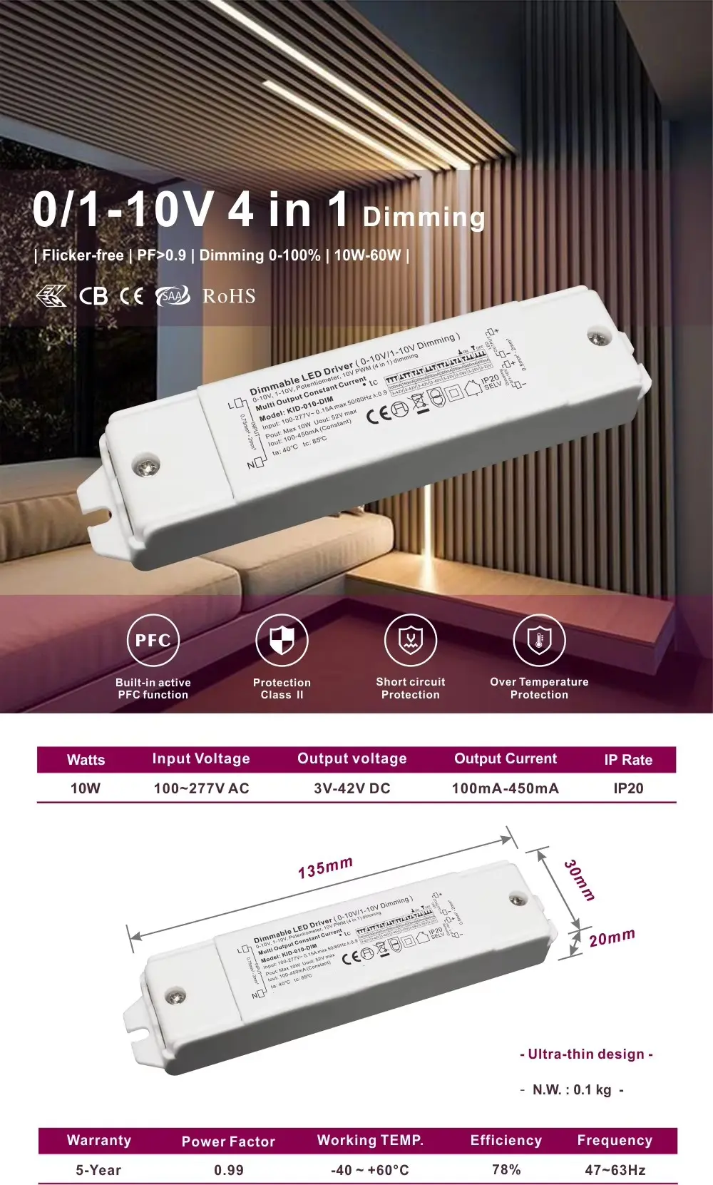 Itaas ang iyong mga proyekto sa pag-iilaw sa loob ng bahay gamit ang STARWELL advanced na 0/1-10V / 10V PWM / Potentiometer (4-in-1) Dimming Series. Pinagsasama-sama ng all-in-one na module na ito ang apat na natatanging kakayahan sa dimming signal sa isang solong, matatag na device, na ininhinyero para sa walang kamali-mali na pagganap na may 10-60W LED system. Dinisenyo para sa mga integrator, installer, at engineer na humihiling ng flexibility, reliability, at simple, ito ang tiyak na tulay sa pagitan ng iyong control system at perpektong illumination.