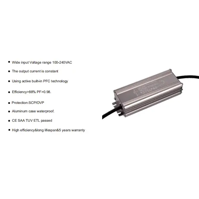 Ang STARWELL na may mataas na kalidad na 1200mA Constant Current Waterproof LED Driver, partikular na idinisenyo para sa mga LED lighting fixtures sa mga panlabas/maalinsangang kapaligiran, tugma sa 10-40W na mga ilaw sa kalye, mga ilaw sa hardin, mga ilaw sa ilalim ng dagat, mga kahon ng ilaw sa advertising at iba pang maraming sitwasyon. Pag-ampon ng high-precision constant current chip, ang output current error ay ≤±3%, tumpak at stably na pinananatili sa 1200mA, sa panimula ay inaalis ang flicker (flicker depth <5%) at mga isyu sa light decay, na maaaring pahabain ang buhay ng serbisyo ng LED fixtures ng higit sa 30%; Nilagyan ng IP67 waterproof sealing technology + waterproof potting technology, ang waterproof level ay hindi umabot sa leakage sa loob ng 30 minuto sa 1 metro sa ilalim ng tubig, na may kakayahang makayanan ang malupit na kapaligiran tulad ng ulan, tilamsik ng tubig at alikabok, na may panlabas na tuluy-tuloy na buhay ng pagtatrabaho na higit sa 50,000 oras, na ginagawa itong mas maaasahan para sa pangmatagalang paggamit.