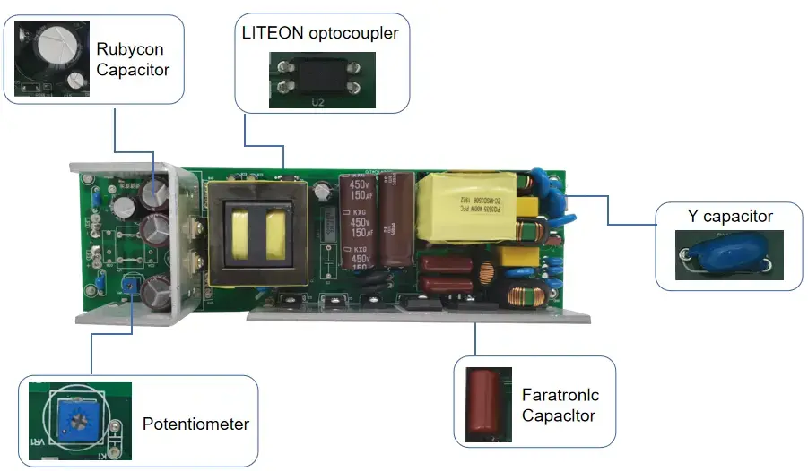 Precise Constant Current · Long-lasting Durability: Ang STARWELL constant current triac dimmable LED driver ay gumagamit ng high-precision constant current chip. Ang kasalukuyang error sa output ay ≤ ± 3%, ang output current ay stable sa 1200mA, at ang flicker depth ay <5%, kaya inaalis ang mga problema ng flickering at light attenuation. Maaari nitong pahabain ang buhay ng serbisyo ng LED lighting fixtures ng higit sa 30%, at ang tuluy-tuloy na buhay ng pagtatrabaho nito ay maaaring umabot ng 50,000 na mga oras ng pagpapanatili, at sa pamamagitan ng makabuluhang pagpapalit ng mga oras ng pagpapanatili.