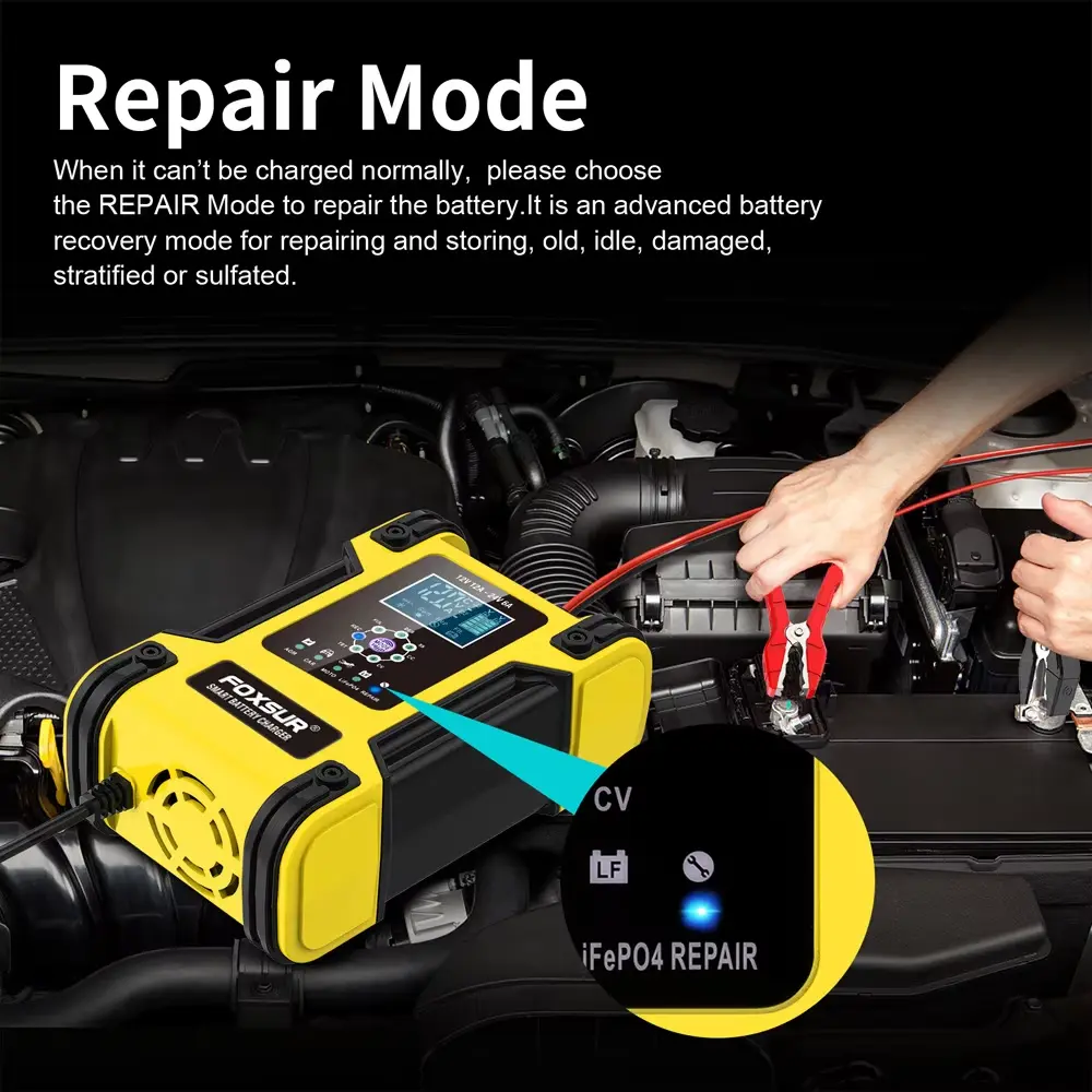 Function ng Intelligent Repair: Nakakatulong ang built-in na pulse desulfation mode na mabawi ang mga sulfated na baterya at maibalik ang nawalang kapasidad.