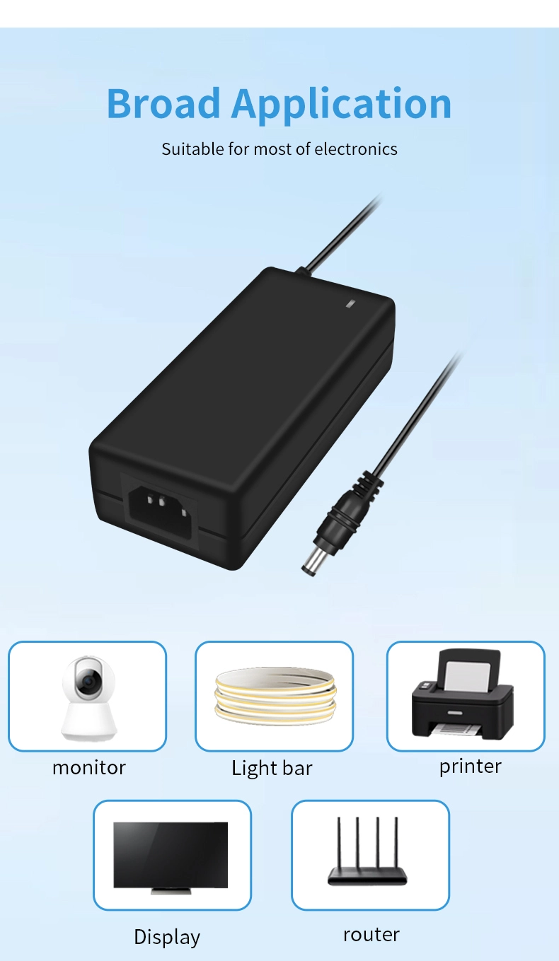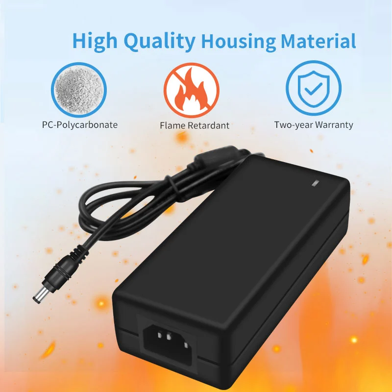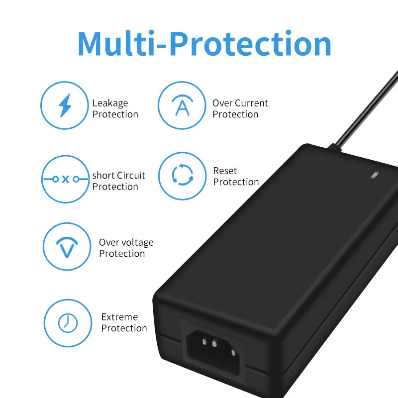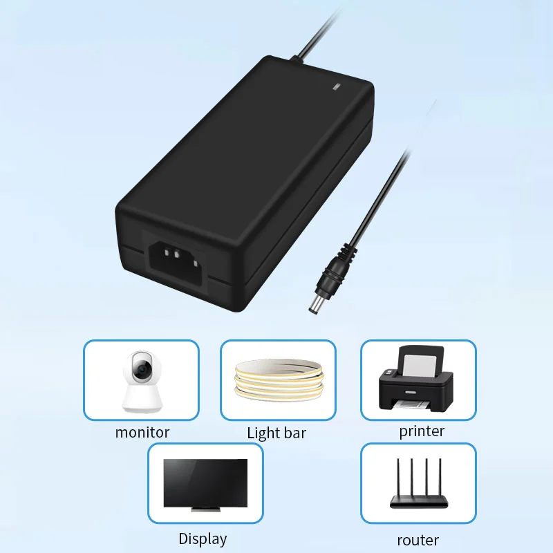 Ang AC 100-240V wide voltage input ay katugma sa mga power grid sa mahigit 100 bansa sa buong mundo. Ang 1.5m extended na output cable (1.0mm² diameter) na ipinares sa isang 180° rotatable DC connector ay umaangkop sa iba't ibang mga sitwasyon sa pag-install. Sa compact size na 120×60×30mm lang, ito ay 35% na mas maliit kaysa sa mga tradisyunal na adapter na may parehong kapangyarihan, na tumitimbang lamang ng 280g—pagpapabuti ng portability ng 50%.