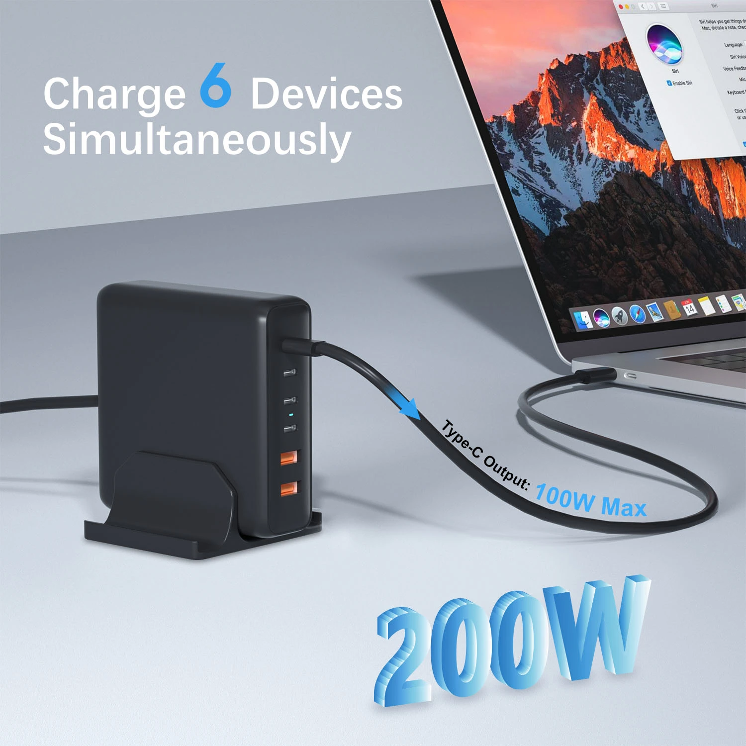 Gan 200w Mabilis na Charger 4 USB-C + 2 USB-A 200W PD Charger