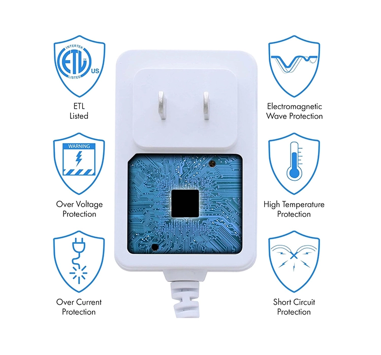 Authoritative Certification, Worry-Free Safety: Ang produkto ay mahigpit na naipasa ang maraming mga sertipikasyon sa kaligtasan sa internasyonal tulad ng ETL, FCC, CE, at PSE! Ang ETL, FCC, CE, PSE 24V power adapter ay nangangahulugang nakakatugon ito sa pinakamataas na pamantayan sa mga tuntunin ng kaligtasan ng elektrikal, pagiging tugma ng electromagnetic at proteksyon sa kapaligiran. Maaari mo itong gamitin nang may ganap na kumpiyansa.