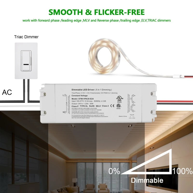 1. Precise 0-10V Dimming: Sinusuportahan ng STARWELL 0-10V Dimming Led Driver ang makinis na dimming mula 0% hanggang 100% na liwanag na may dimming na resolution na ≤ 1%, na maaaring umangkop sa magkakaibang mga kinakailangan sa eksena sa pag-iilaw.