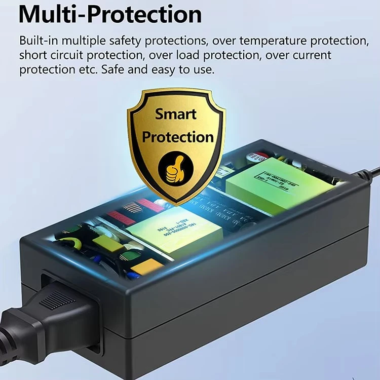 Starwell durable 24V 7.5A universal desktop power adapter ay nagtatampok ng mataas na conversion efficiency, minimal ripple at ingay, at mahusay na regulasyon ng boltahe sa ilalim ng iba't ibang load. Tinitiyak ng pabahay ang mahusay na pag-aalis ng init at tibay. Ang mga comprehensive na circuit ng proteksyon ay nagpoprotekta laban sa overvoltage, overcurrent, short circuit at overheating, na nagpapataas ng kaligtasan ng mga kagamitan at user.