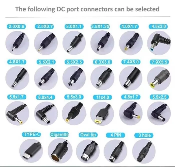 3. Pagkatugma ng Konektor: Kumpirmahin na ang DC output plug ng adapter ay may tamang polarity (kadalasan center-positive) at pisikal na laki (hal., 5.5mm x 2.1mm) upang magkasya nang ligtas sa power jack ng iyong device.