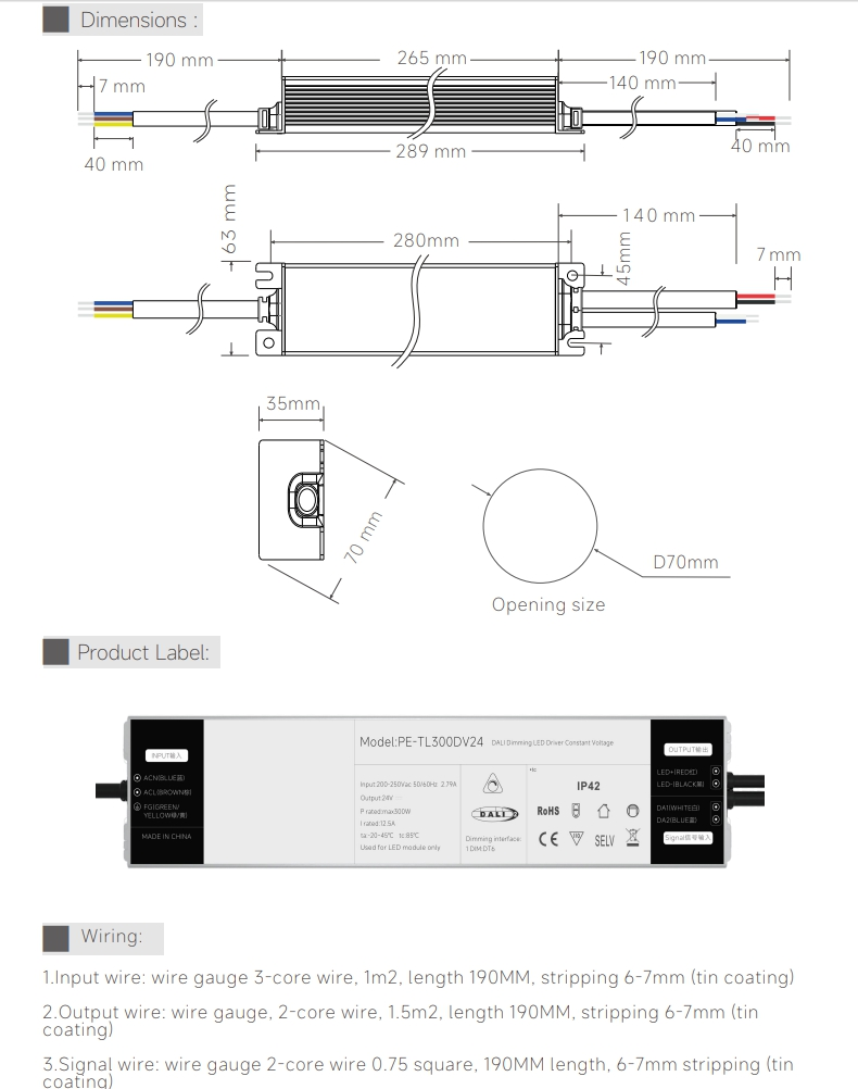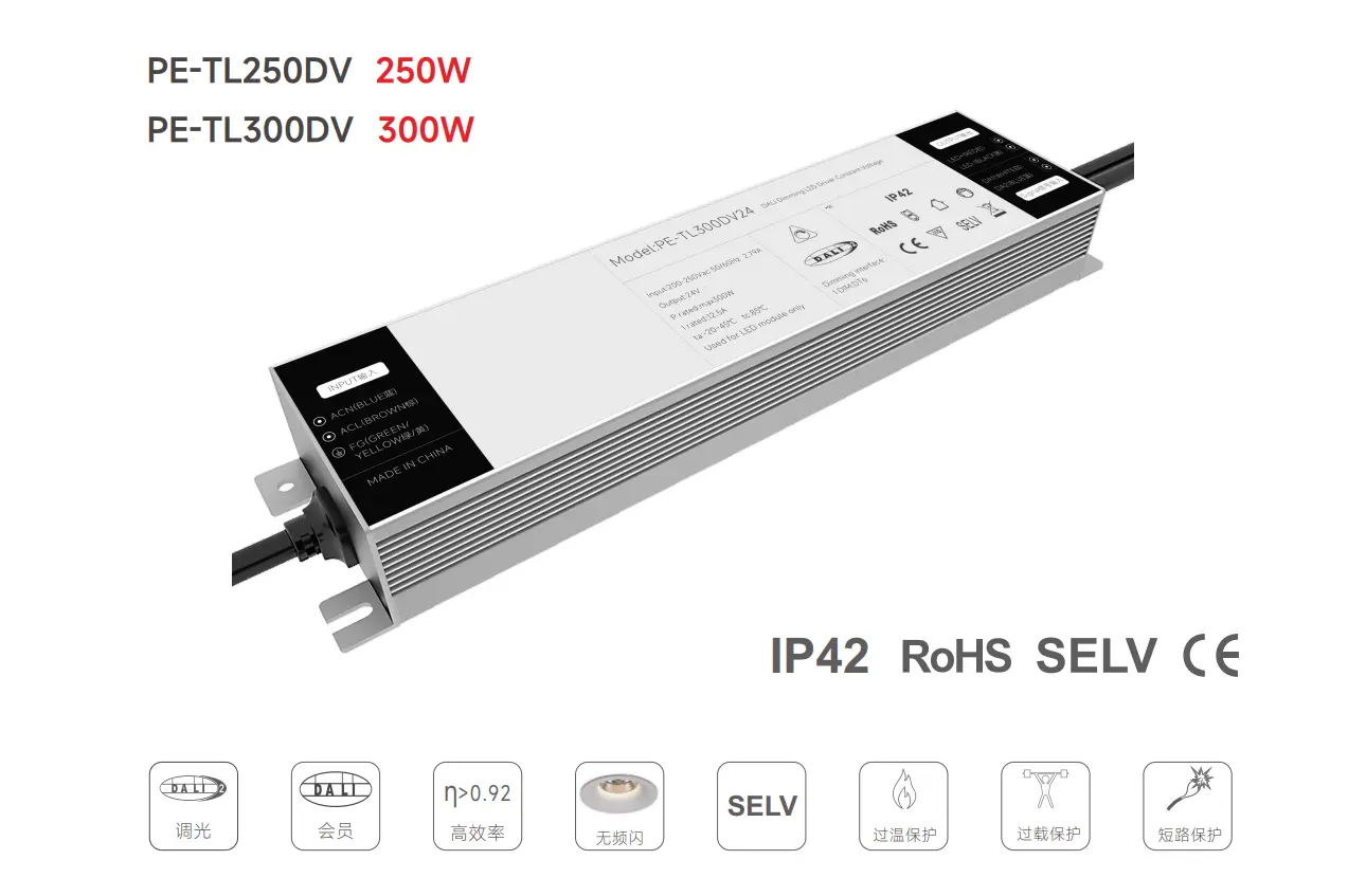 Gamit ang isang compact, IP20 enclosure, ito ay madaling i-install sa ceiling voids, control cabinets, o lighting fixtures. Tinitiyak ng pare-parehong disenyo ng boltahe nito ang pare-parehong pagganap para sa mga parallel-connected na LED strips, panel, at modules, na ginagawa itong perpekto para sa mga retail space, opisina, hotel, at mga proyektong pang-arkitekturang ilaw sa labas.