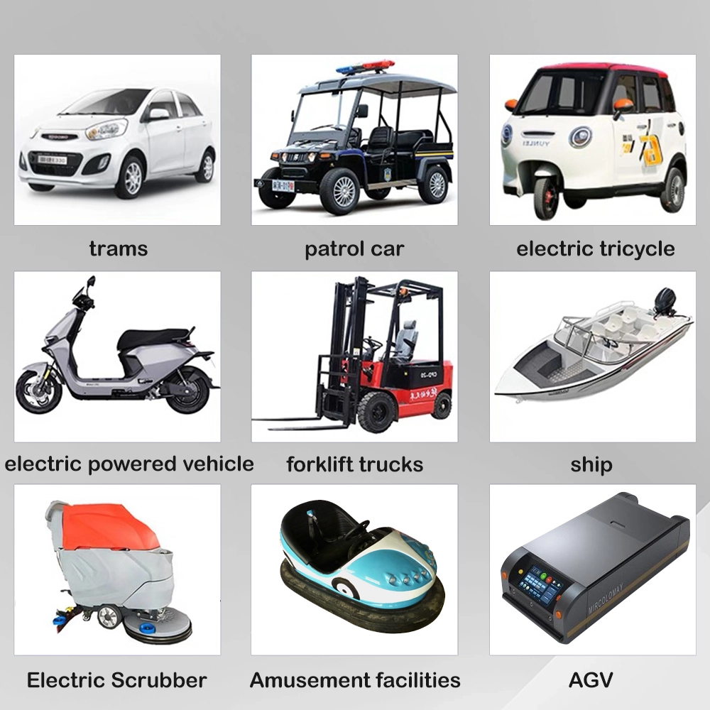 Mga Application ng Produkto Mga de-kuryenteng bumper car at amusement rides Mga sasakyang pamamasyal at golf cart Mga patrol na sasakyan at security cart Mga forklift at kagamitan sa paghawak ng materyal Mga pang-scrub sa sahig at mga makinang panlinis Automated guided vehicles (AGVs) para sa mga bodega Mga de-kuryenteng barko, bangka, at marine utility vessel
