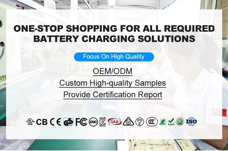 Q1: Ano ang warranty ng iyong mga produkto? A: Nag-aalok kami ng 3 taong garantiya para sa aming mga Battery Charger. Mga Power Adapter at LED Power Supplies, sa parehong oras kung ang mga produkto ay nasira nang hindi idinisenyo, handa kaming palitan nang walang kondisyon. Q2: Anong uri ng charger ng baterya ang maaari mong ialok? A: Maaari kaming gumawa ng Lithium Battery Charger, Lead-acid Battery charger, LifePo4 Battery Charger at NilMH Battery Charger sa loob ng saklaw na 30w-1000w.
