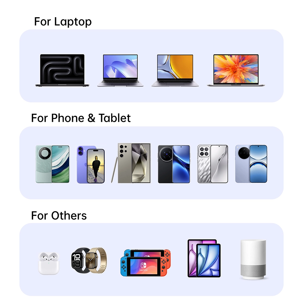 Universal Compatibility: Ang aming PD Charger ay nilagyan ng teknolohiya ng paghahatid ng kuryente (PD), ginagawa itong katugma sa isang malawak na hanay ng mga aparato, kabilang ang mga smartphone, tablet, at kahit na ilang mga laptop. Ito ang pangwakas na solusyon sa pagsingil para sa lahat ng iyong mga gadget.