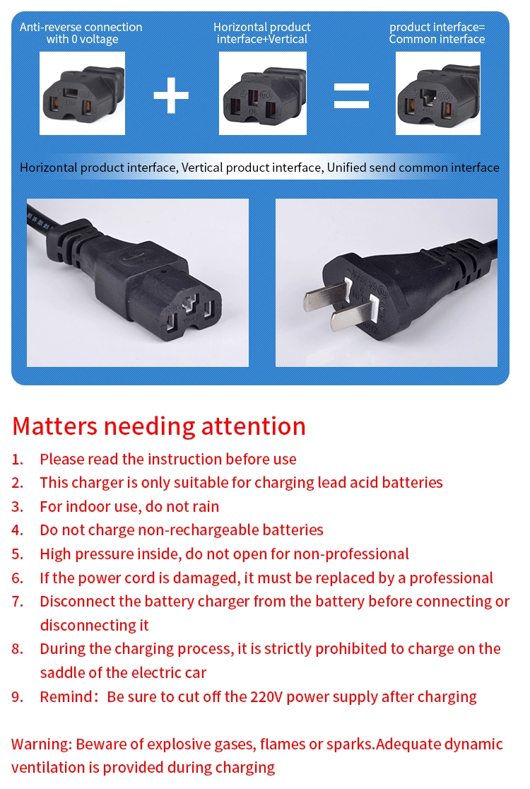Ginagamit man para sa mga electric scooter, golf cart, sightseeing na sasakyan, forklift, o kagamitan sa paglilinis, ang charger na ito ay naghahatid ng maaasahang suporta sa enerhiya sa malawak na hanay ng mga application.