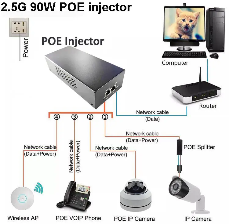 90W 2.5G POE injector |