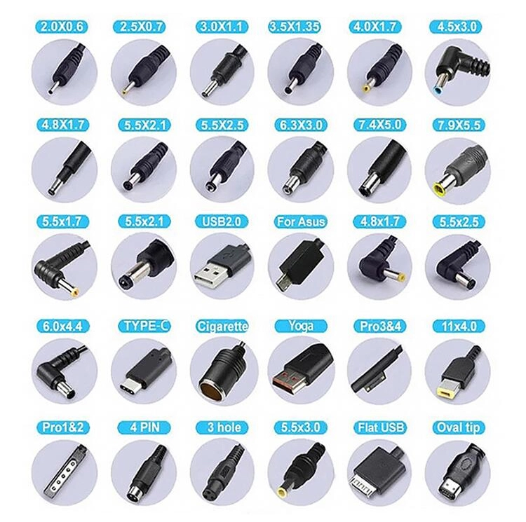 USB-C, 5.5x2.1mm, 5.5x2.5mm, 4.0x1.7mm, 3.5x1.35mm at higit pang available |