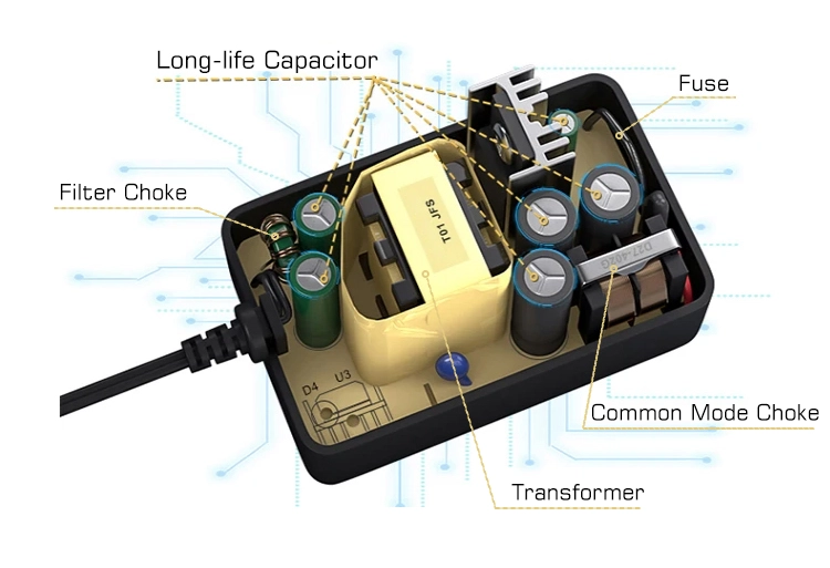 * Higit pang mga unit para sa 48W series: 5V/9V/12V/15V/19V/24V/36V/48V available * Kaligtasan: OCP/OVP/OTP, SCP, awtomatikong overload cut-off, over Voltage cut-off, awtomatikong thermal cut-off. * Malawak na compatibility: LED Strip Lights, 3D Printer, ham radio transceiver, CCTV camera, car subwoofer amp, audio amplifier, wireless router, ADSL Cats, Humidifier, HUB, Keyboard, BT Speaker, Monitor, Webcam, DVR, NVR, audio/video power supply