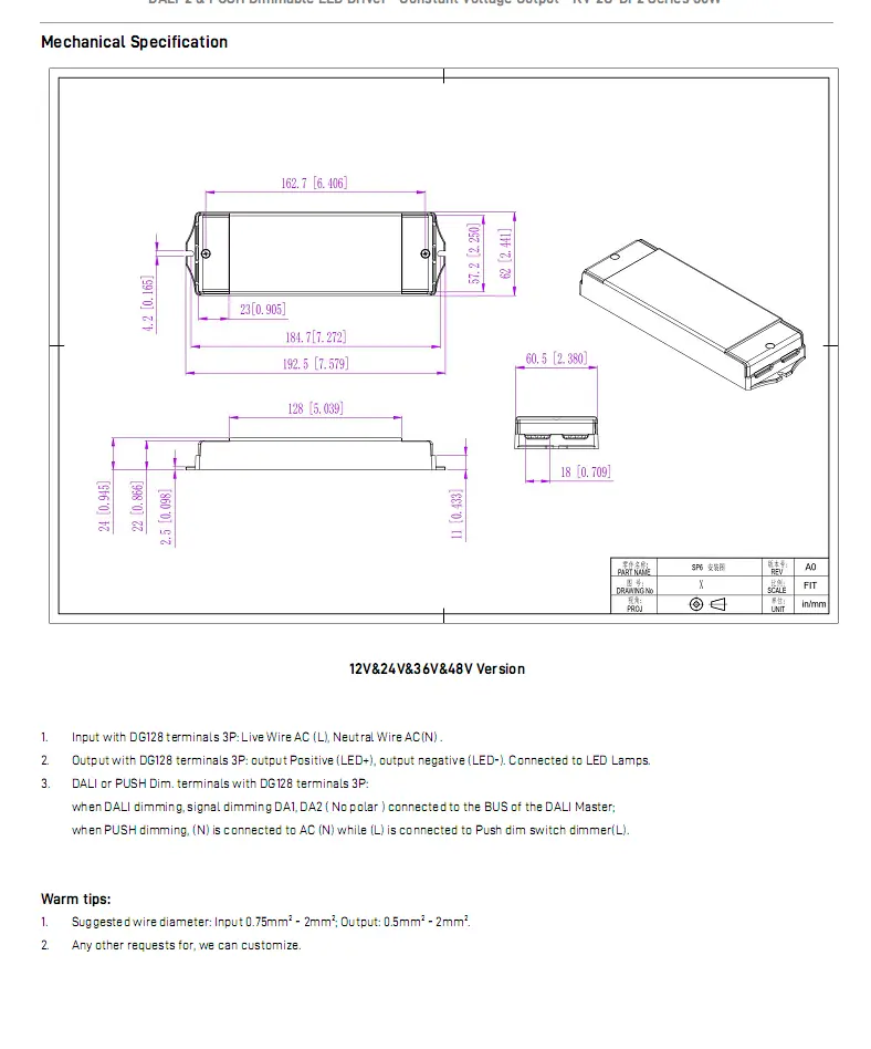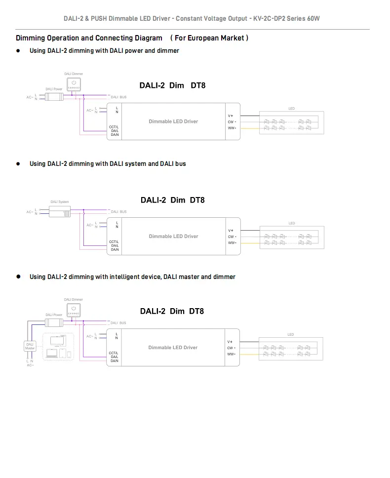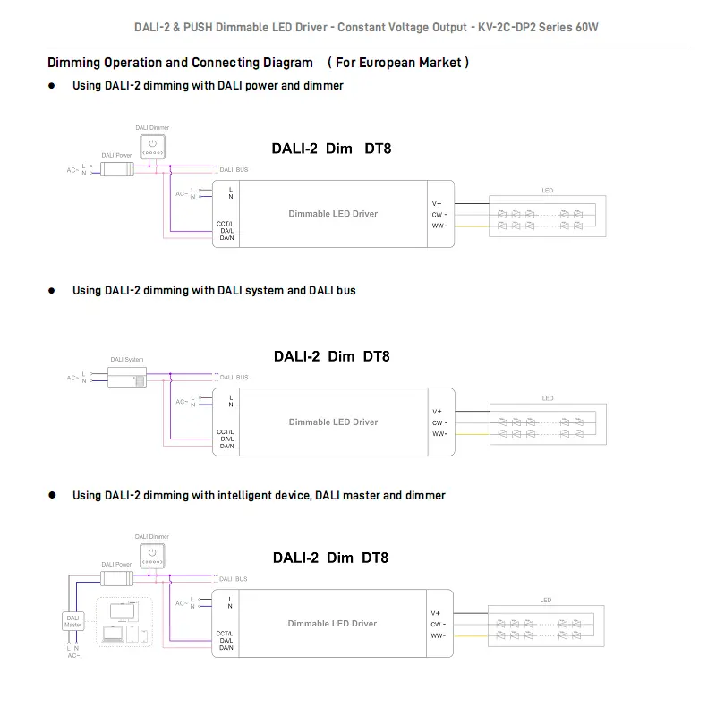 Nakalagay sa isang compact, flame-retardant case, nababagay ito sa panloob na komersyal na ilaw gaya ng mga opisina, hotel at shopping mall. Gamit ang maaasahang pagganap at madaling pagsasama ng DALI bus, nagbibigay-daan ito sa matalinong kontrol sa pag-iilaw at pamamahala ng eksena, perpekto para sa mataas na kalidad na mga proyektong puting ilaw.
