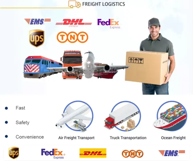 Kadalasan, nagpapadala kami sa pamamagitan ng UPS, Fedex, DHL...Kung mayroon kang anumang mga espesyal na kinakailangan para sa logistik, mangyaring ipaalam sa amin nang maaga.