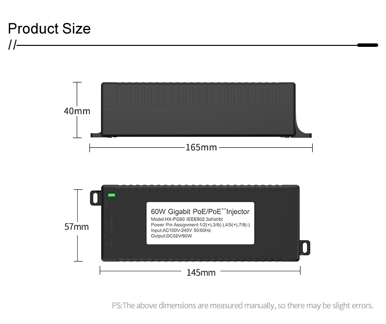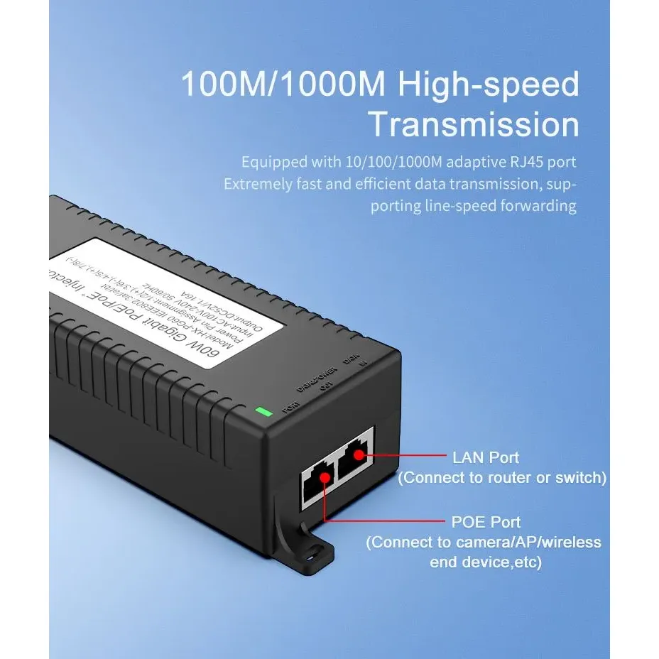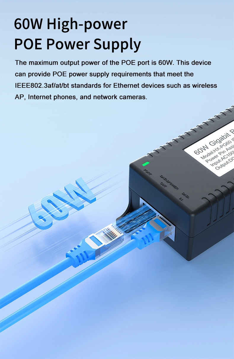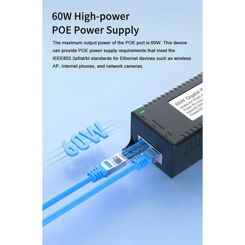 Gigabit 60W Standard POE Injector |