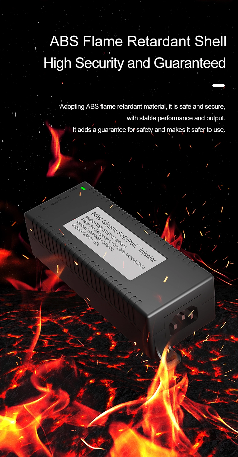 Security Surveillance: Ang Gigabit 60W desktop POE injector para sa IP Camera Security at Network Device ay nagbibigay ng stable na power sa mga IP camera at PTZ camera.