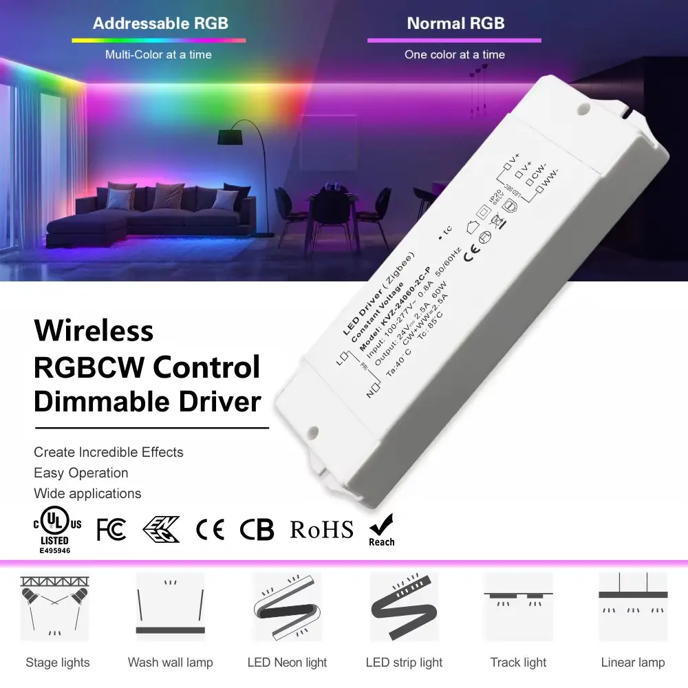 Madaling Pag-install, Pangmatagalang Pagganap Idinisenyo para sa pagiging simple, ang Zigbee 3.0 led Driver 60W ay nagtatampok ng mga direktang koneksyon sa mga kable na parehong simple at secure. Sa isang IP20 rating, ito ay angkop para sa tuyo at mamasa-masa na mga lokasyon-sa loob ng bahay o protektadong kapaligiran. Sinusuportahan ng isang 5-taong warranty, nag-aalok ito ng pangmatagalang kapayapaan ng isip.