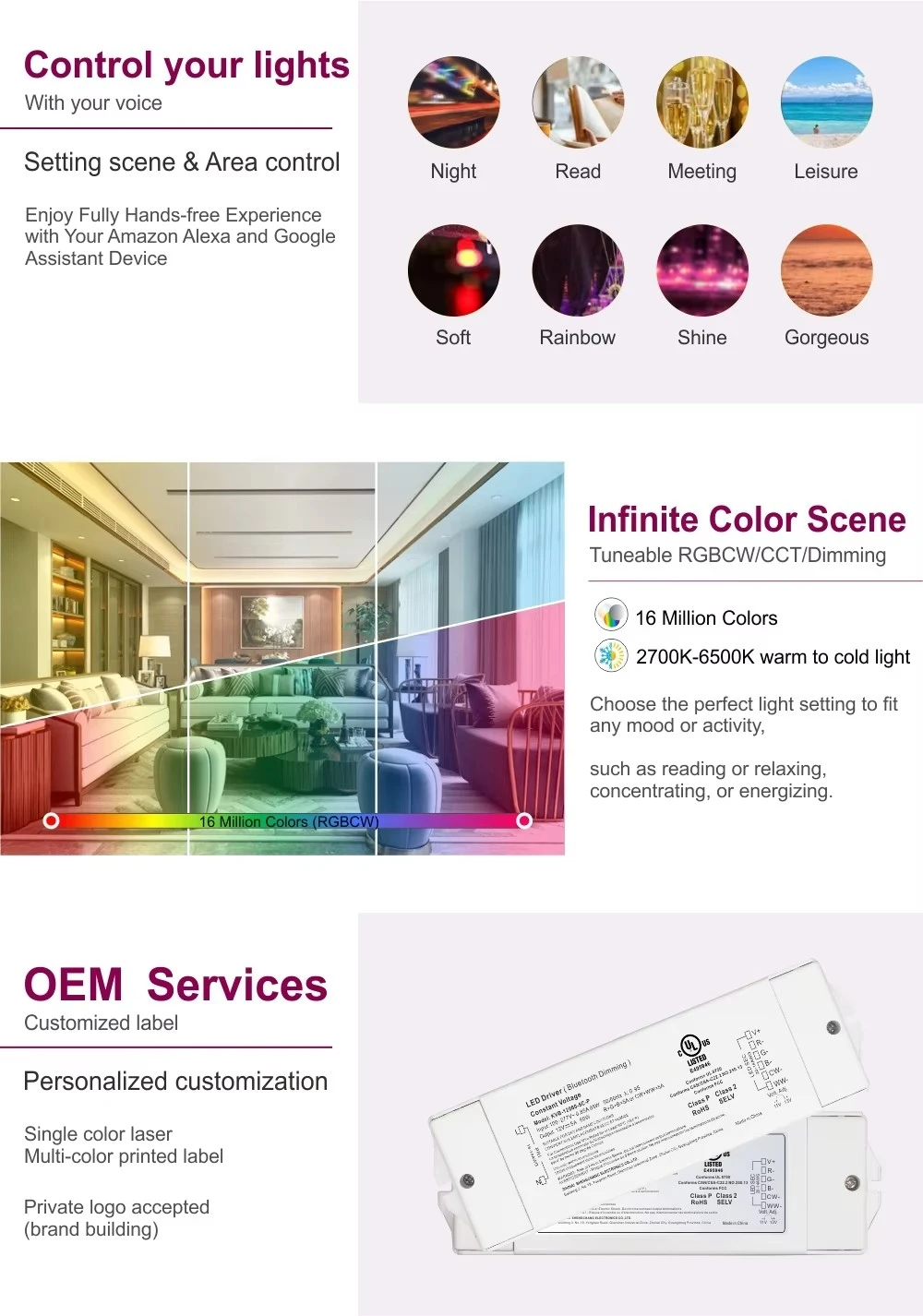 2. Ang Zigbee dimmable driver ay maaaring makontrol ng Smart Speaker, tulad ng Google home o Amazon echo