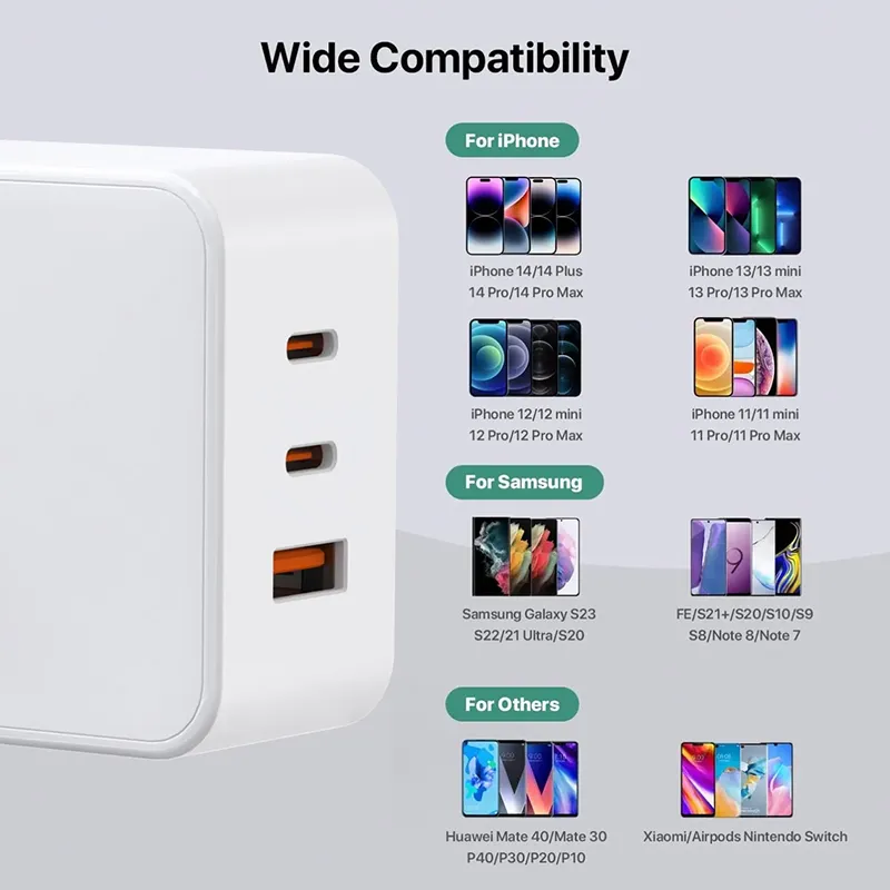 Compact at magaan-40% na mas maliit kaysa sa tradisyonal na mga charger at madaling dalhin sa isang bag o bulsa. Perpekto para sa paglalakbay at pang-araw-araw na paggamit.