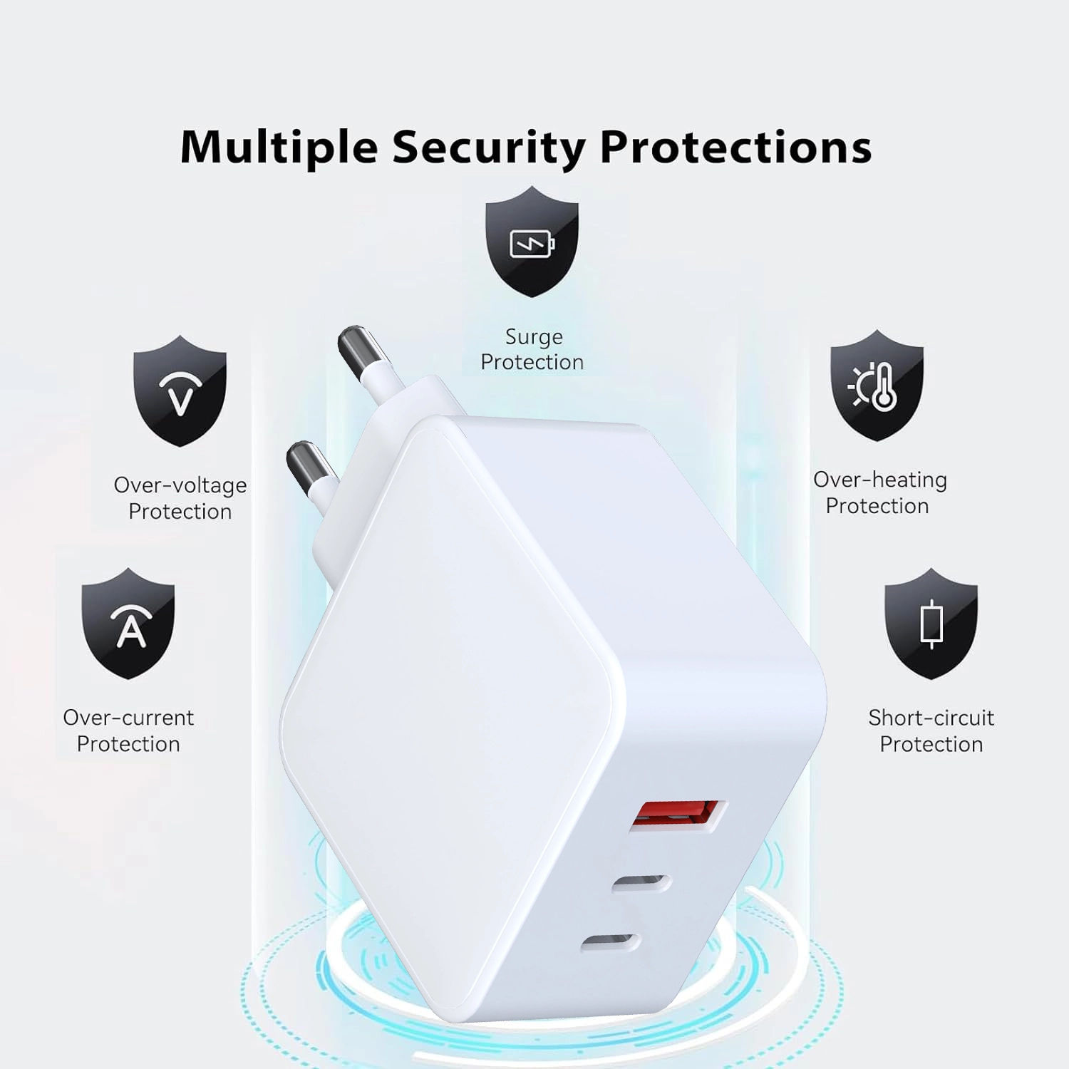 Advanced na Proteksyon sa Kaligtasan - Tinitiyak ng built-in na overvoltage, overcurrent, overheat at short-circuit na proteksyon ang ligtas at maaasahang pag-charge ng lahat ng iyong device.