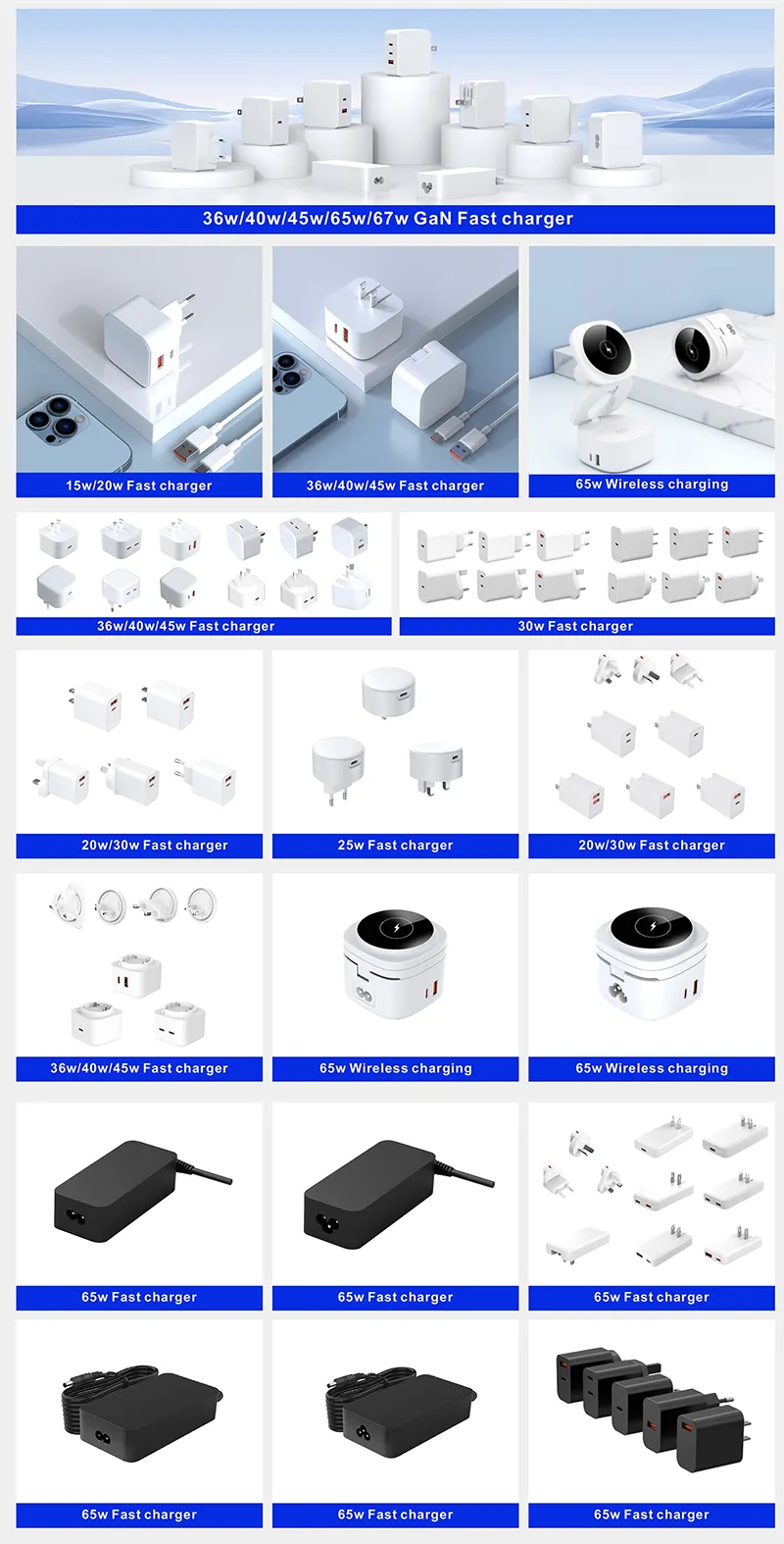 Ang charger na ito ay naghahatid ng hanggang 65W ng pare-parehong kapangyarihan at mahusay na nagcha-charge ng mga laptop (hal. MacBook Air/Pro, Dell XPS), mga tablet, smartphone (iPhone, Samsung Galaxy) at iba pang device na sumusuporta sa PD protocol. Ang compact at lightweight nitong disenyo ay ginagawa itong perpekto para sa paglalakbay, habang ang built-in na overvoltage, overcurrent at short-circuit na proteksyon ay nagsisiguro ng ligtas na pag-charge ng charger at mga konektadong device. Karaniwan itong nilagyan ng 1-2 USB-C na mga interface, na sumusuporta sa pag-charge ng maraming maliliit na device nang sabay-sabay, pagbabalanse ng kapangyarihan at kaginhawahan.