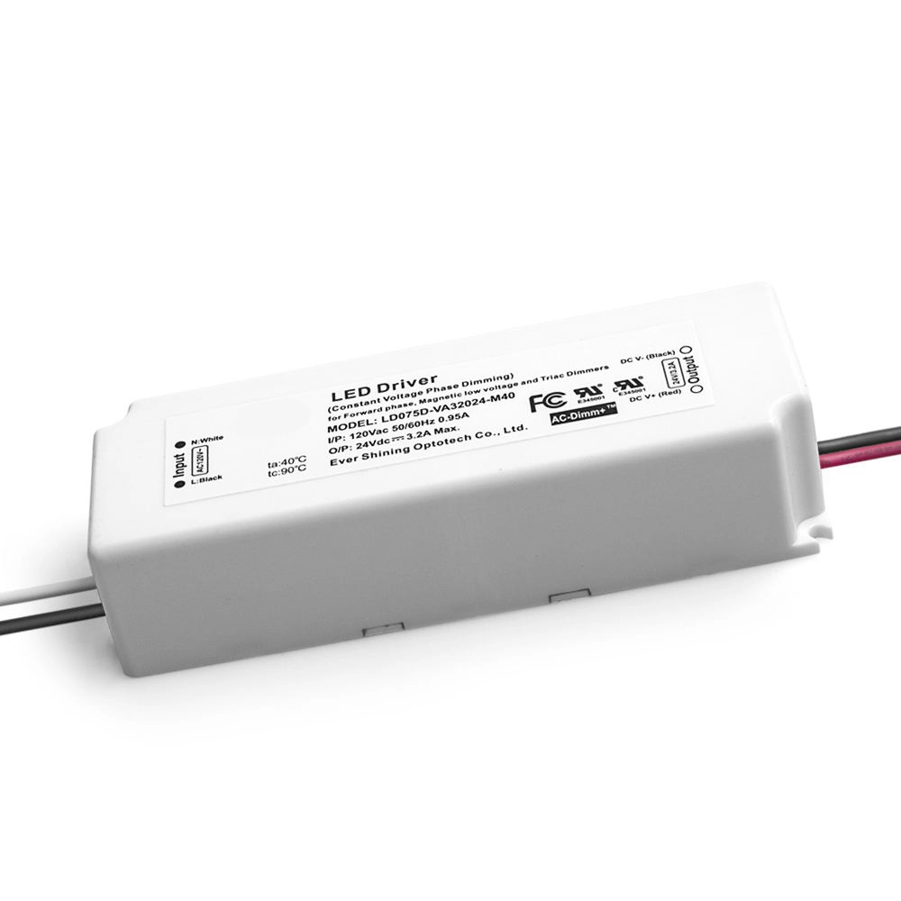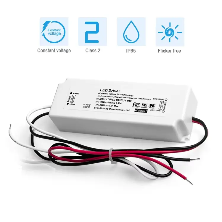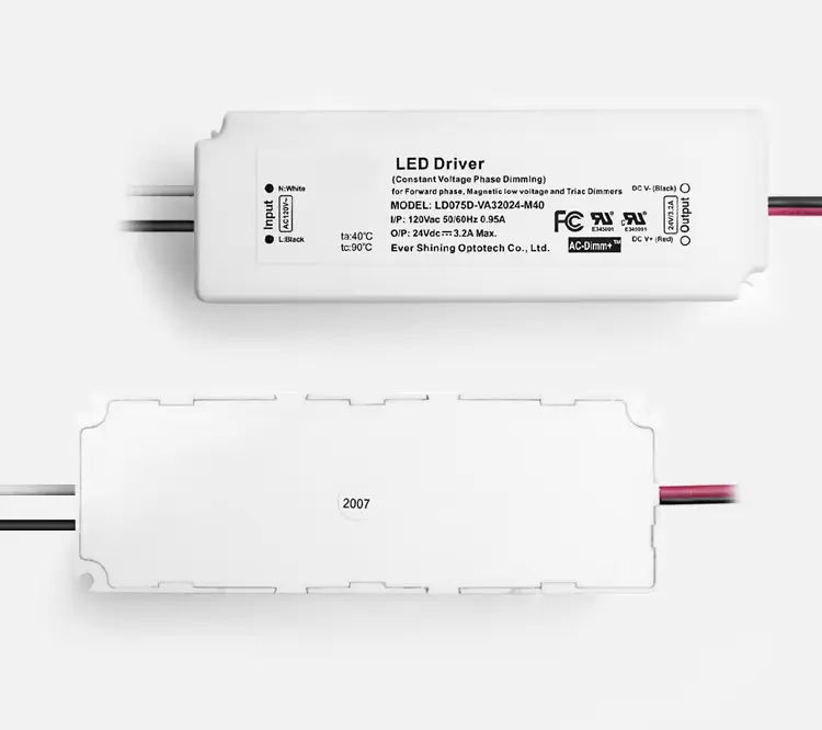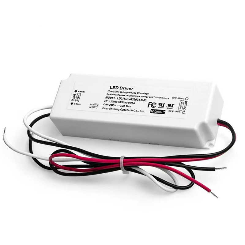 75W Constant Voltage LED Driver na may TRIAC Dimming • Pagiging tugma: Gumagana sa karamihan ng mga karaniwang TRIAC/incandescent-style dimmer. • Stable na Output: Constant Voltage (CV) para sa 12V o 24V LED system. • Smooth Control: Pinapagana ang full-range, flicker-free dimming. • Matatag na Proteksyon: Mga built-in na pananggalang laban sa mga electrical fault. • Karaniwang Paggamit: Perpekto para sa mga dimmable na LED strip, module, at track light.