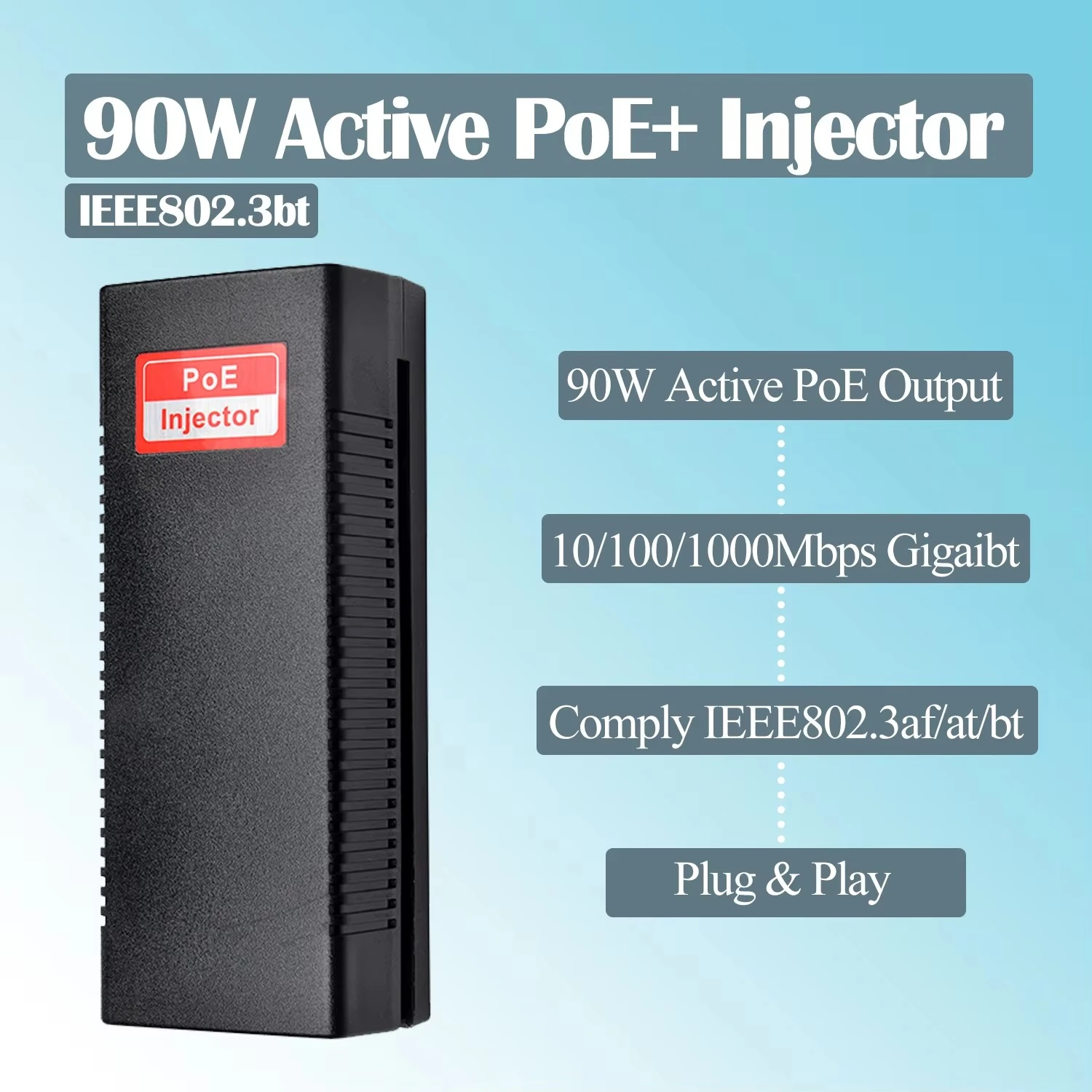 Ang STARWELL OEM PoE Injector Gigabit 48V 90W PoE Injector para sa mga IP Camera ay isang high-performance na solusyon sa Gigabit Power over Ethernet (PoE) na idinisenyo para sa maliliit hanggang katamtamang network environment. Nagtatampok ito ng: