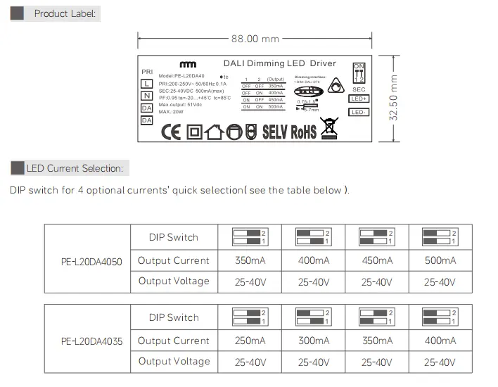 Starwell Constant Current DALI Dimmable Led Driver Specification: