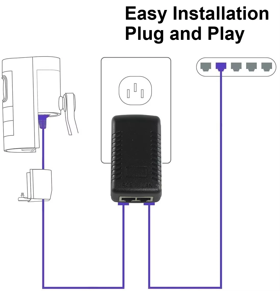 · Plug and Play: Walang kinakailangang configuration. Ikonekta lang ang LAN cable mula sa iyong switch at ang PoE cable sa iyong device.