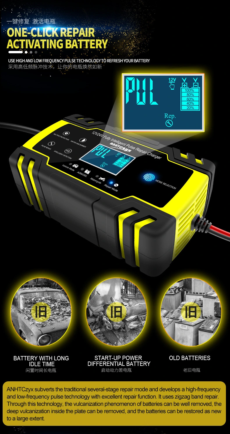 12V 8A automatic pulse agm efb gel battery charger lead-acid start stop 3-stage na charger ng baterya para sa motorsiklo ng kotse |