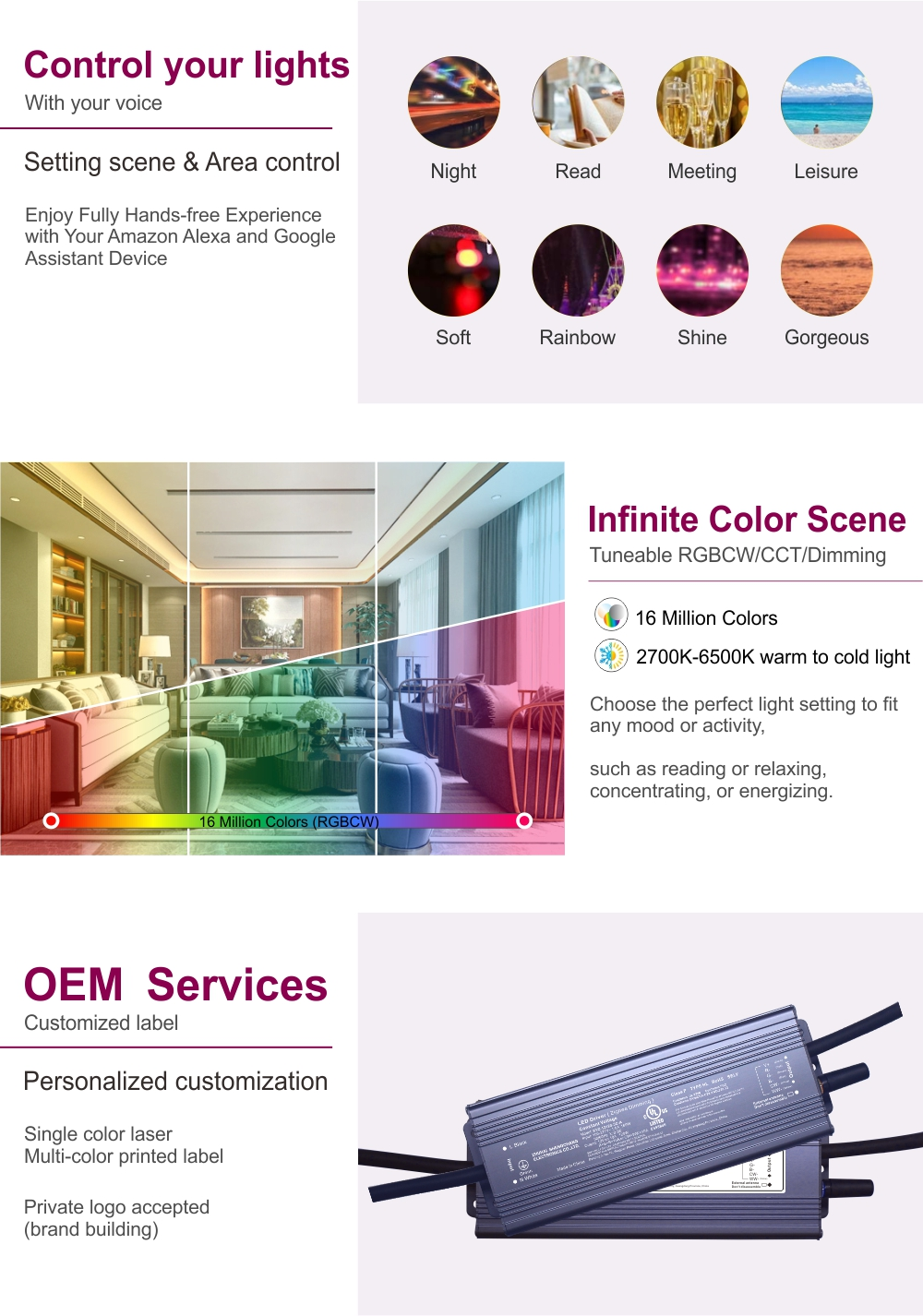 Visual Comfort: Pinoprotektahan ng ultra-deep dimming ang kaginhawahan ng mata sa gabi at nagbibigay ng makulay na liwanag para sa mga party, habang pinapahaba ang habang-buhay ng iyong mga LED fixture.