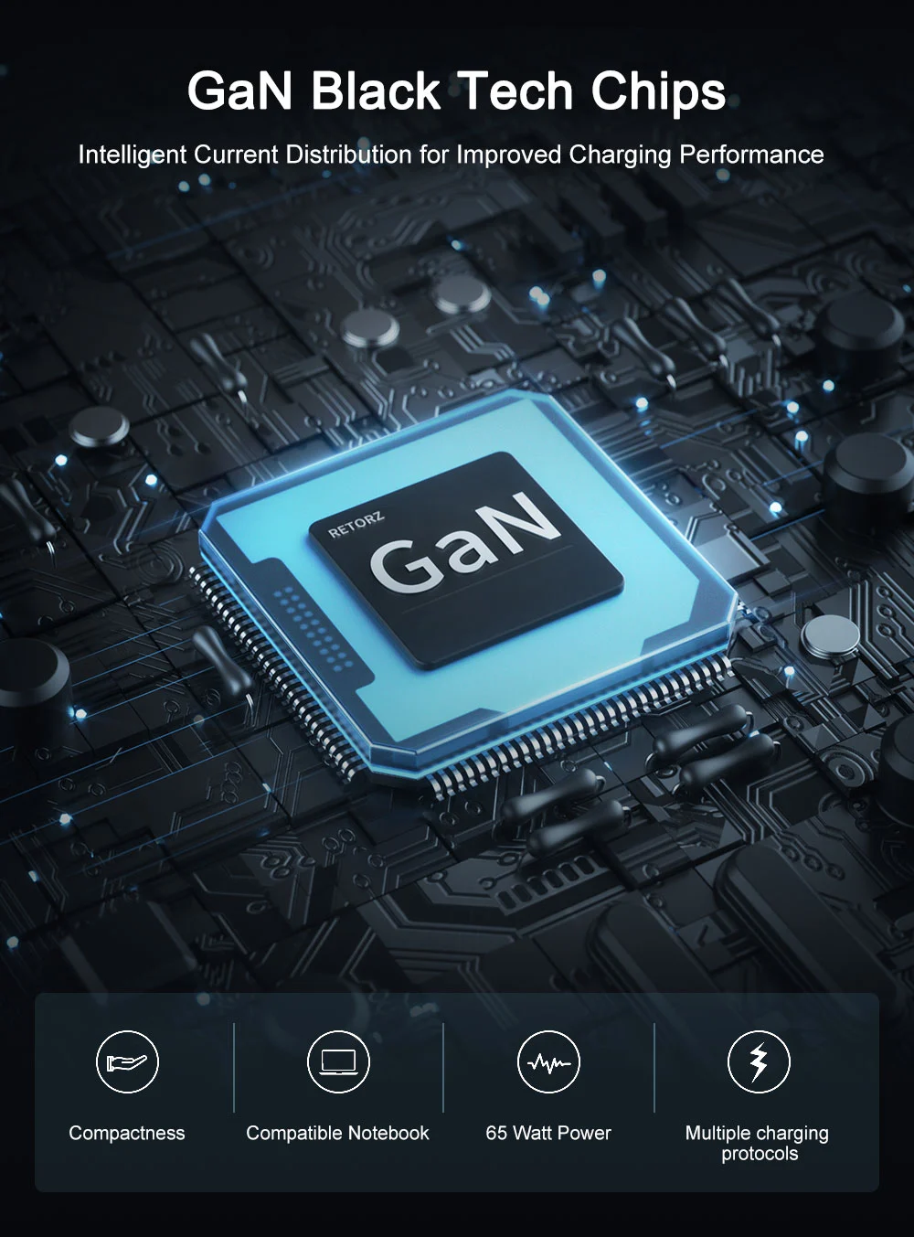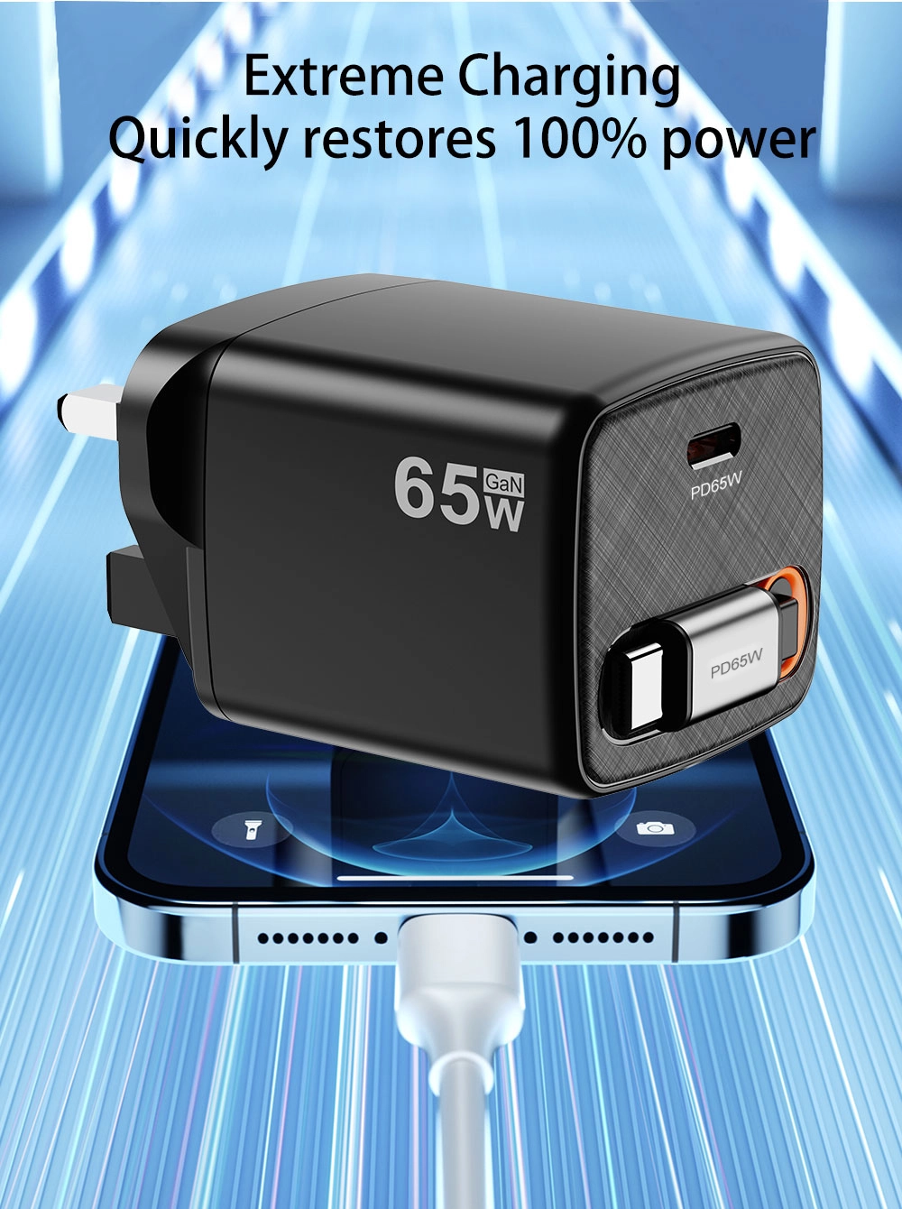 - Mabilis na singilin: 65W output pagbawas ng oras ng pagsingil, mabilis na pinapagana ang iyong mga aparato.